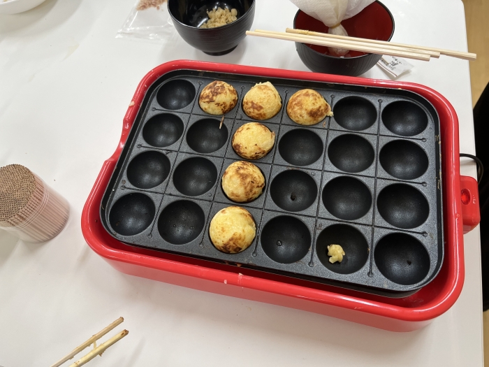 たこ焼き作りに慣れている生徒が積極的に作ったり、教えてあげたりしていました。