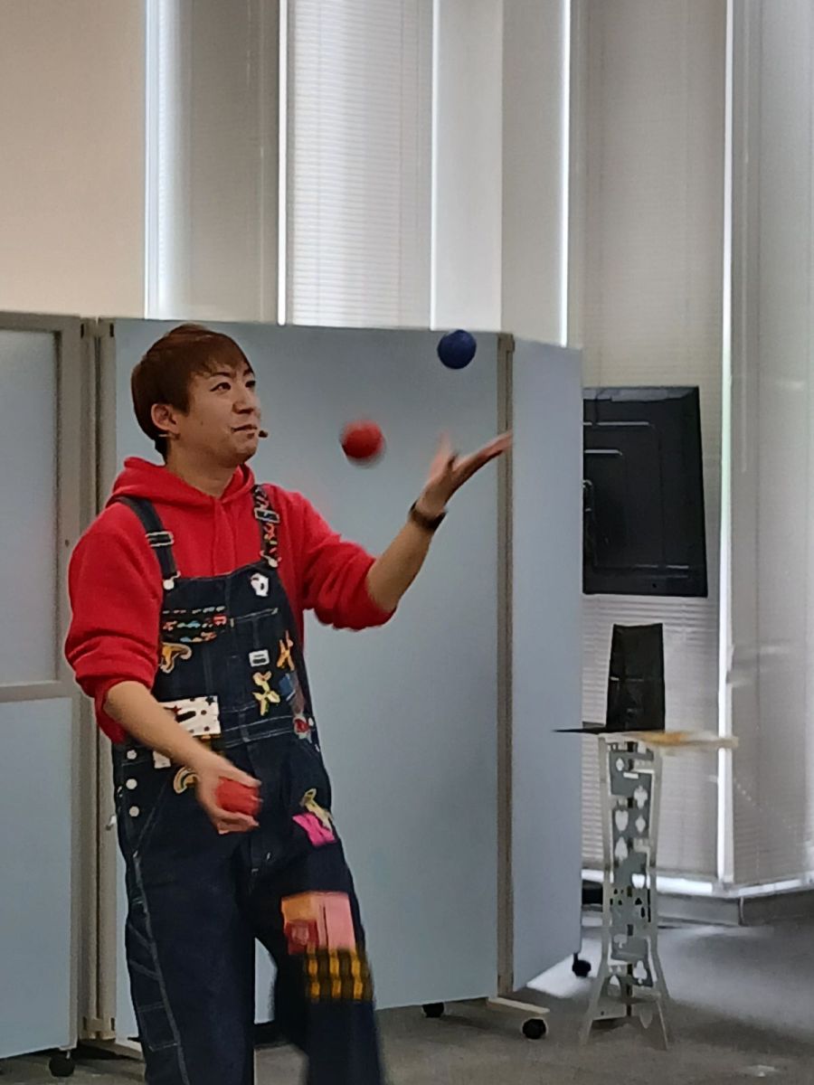 1月31日の土曜開校は梅田校と合同で、マジシャンまつだこうきさんをお招きして、マジックショー&バルーン教室を