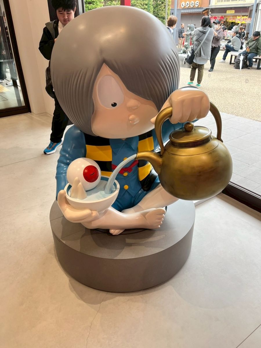 ふるさと記念館に行った後は水木しげる記念館と水木しげるロードに行きました。たくさんの妖怪がいっぱいおりました。
